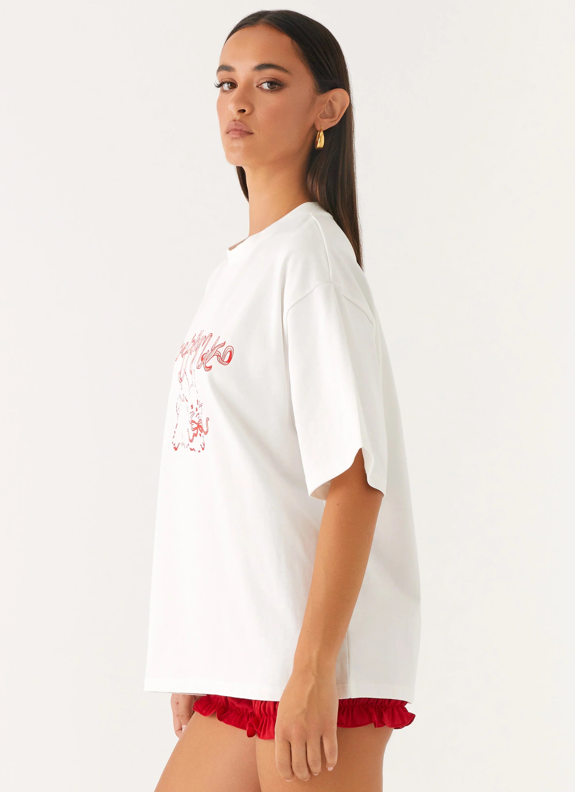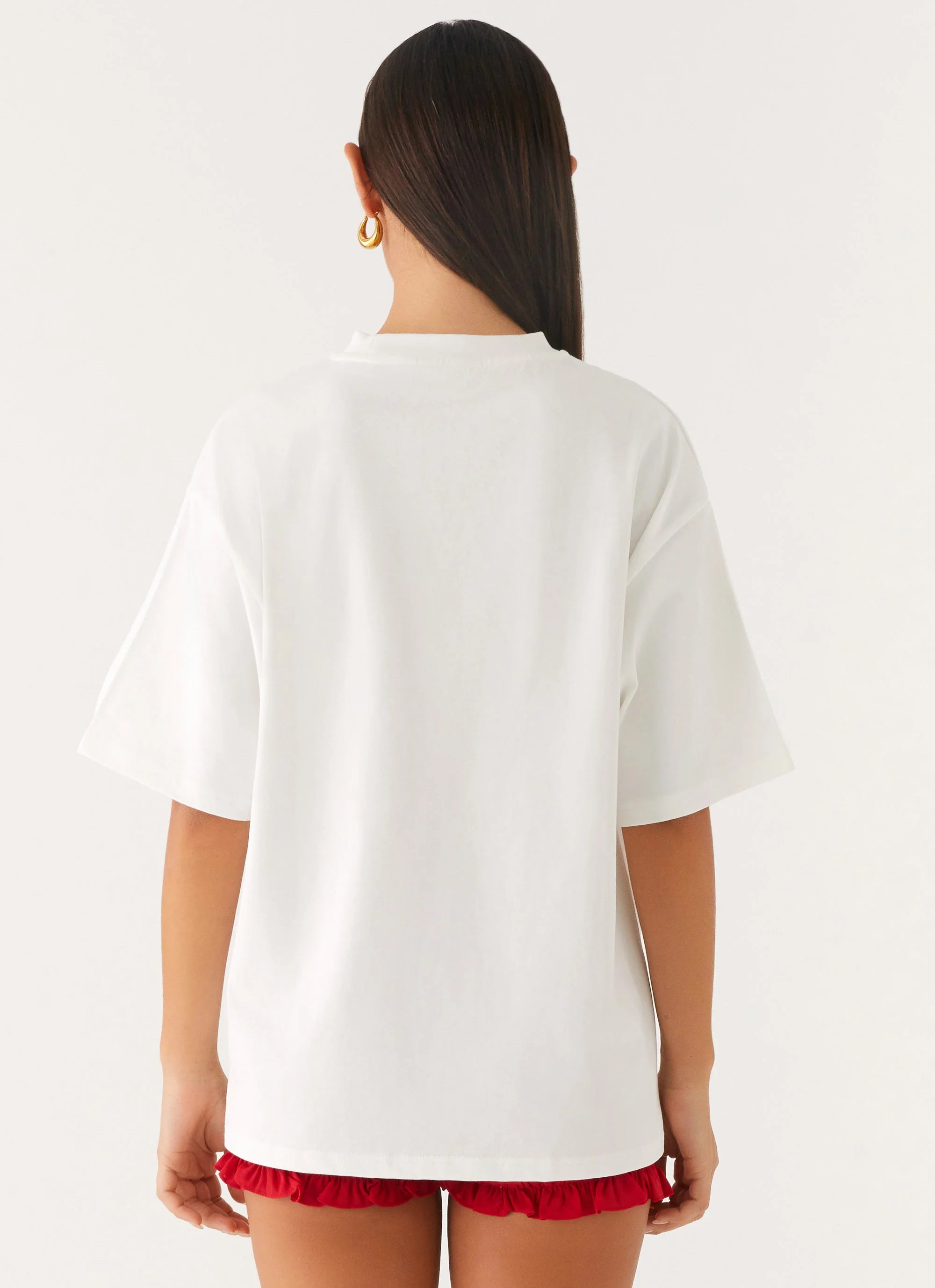 The Born To Have Fun Oversized Graphic Tee is carefree and bold. Featuring a rounded neckline, loose fit, and unlined design, it’s perfect for golden skies and laid-back nights that call for effortless style and fun.