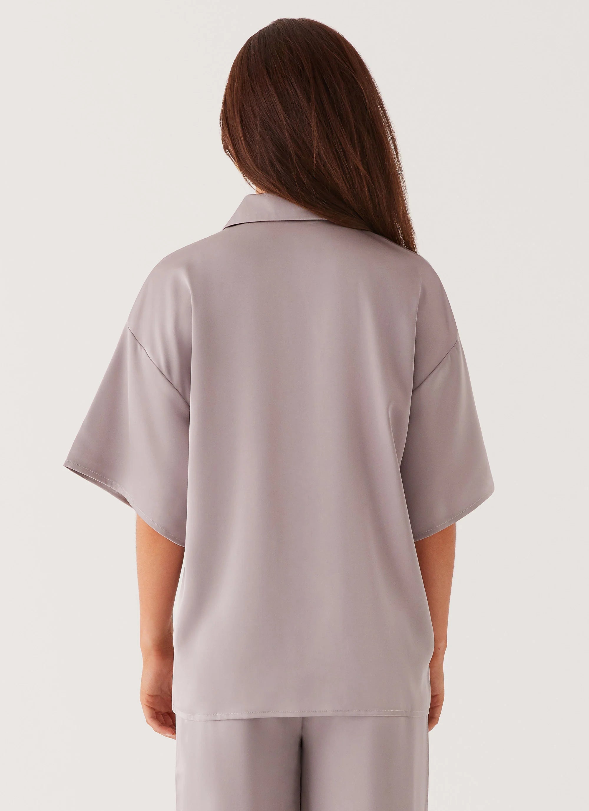 Embrace the allure of the night with our Palm Cove Satin Shirt. With its classic collared style and oversized fit, it exudes effortless sophistication and comfort.