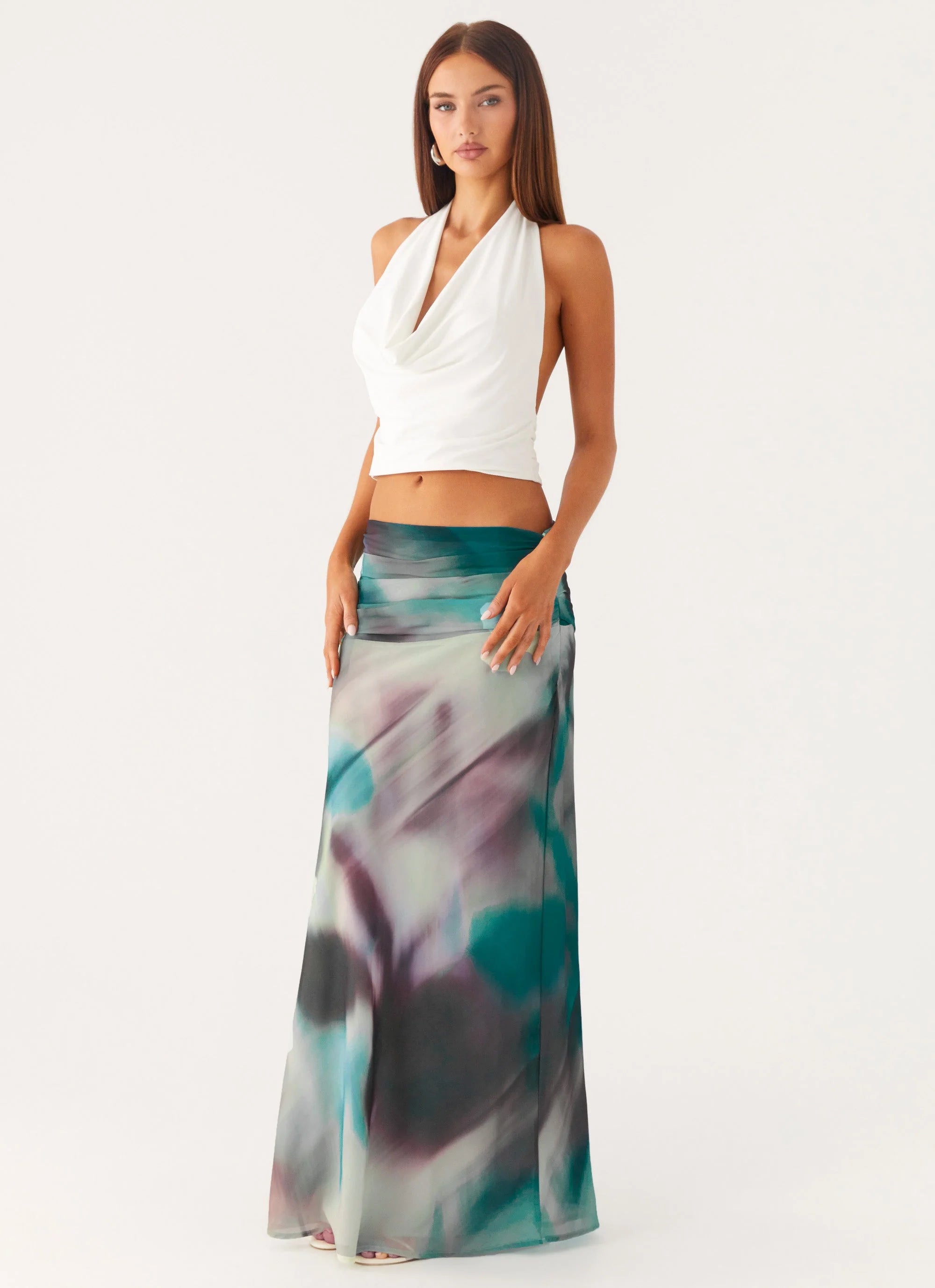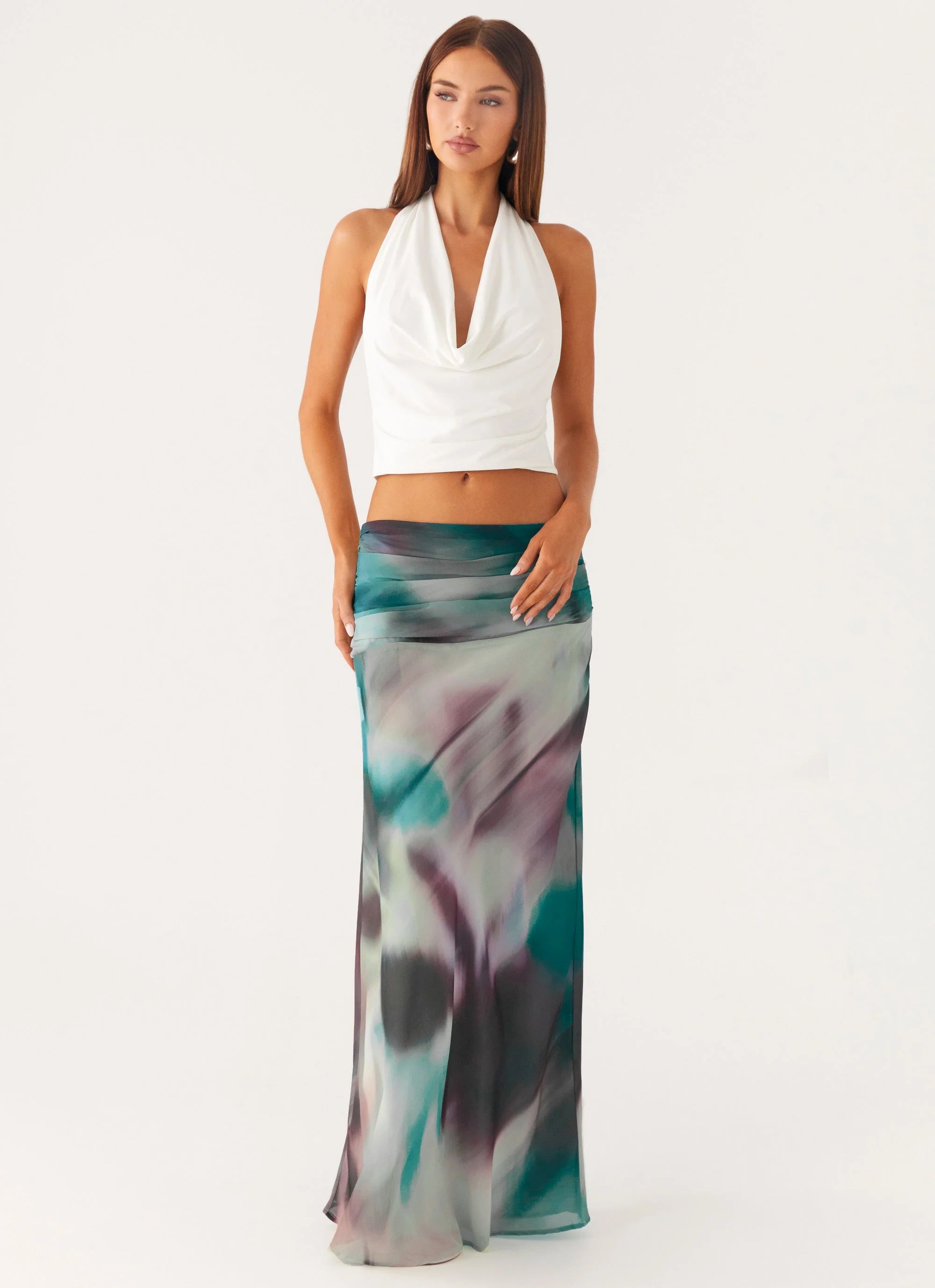 The Rimi Maxi Skirt is made for balmy nights and coastal escapes. Sitting low-rise with a sleek, ruched side detail, this fully lined skirt flows into a maxi length for an effortless silhouette. Finished in an exclusive print, it’s the perfect statement for sunset soirées.