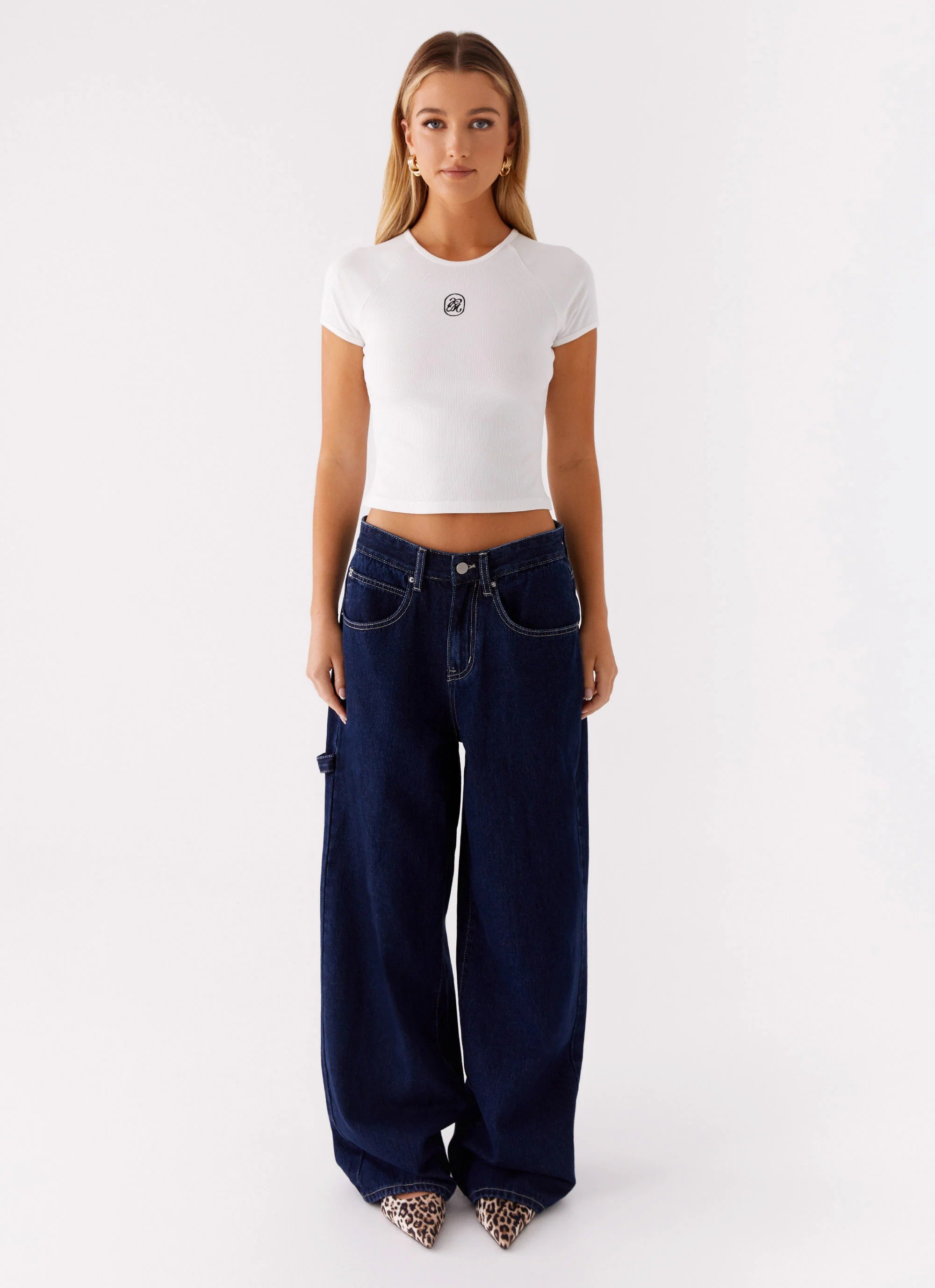 Embrace golden hour in the Signature Monogram Tee, featuring a sleek boat neckline and frill hem for a playful twist. The elasticated design lines add a subtle contour, making it the perfect piece for those who come alive when the sun sets.